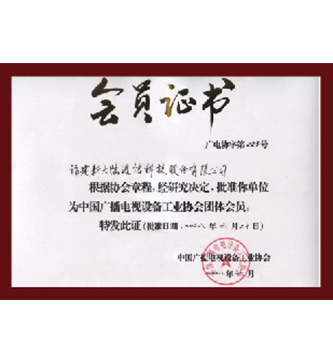 榮獲福州市2006-2007年度納稅信用A級證書中國廣播電視工業(yè)協(xié)會會員證書