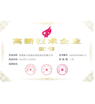 新大陸”中國馳名商標福建省高新技術企業(yè)認定證書直放站