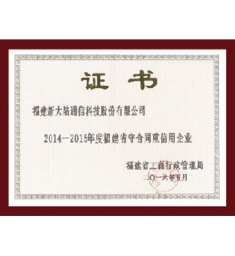 榮獲2014-2015年度《福建省守合同重信用企業(yè)》