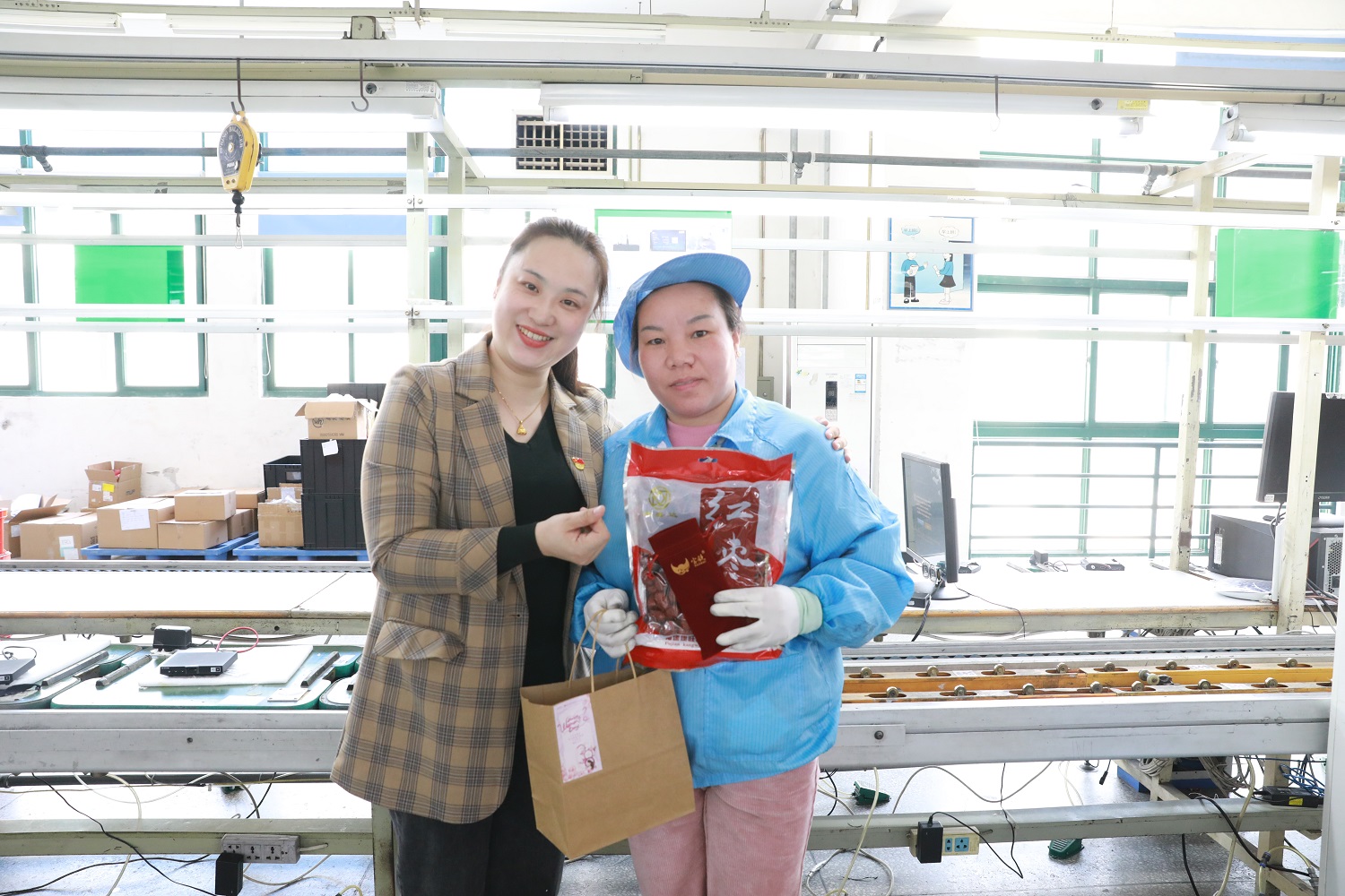 ??? 3月7日上午,公司黨支部、工會(huì)干部代表一行前往閩侯新大陸制造中心和馬尾飛毛腿工廠生產(chǎn)一線,親切慰問女職工,向女神們表達(dá)節(jié)日祝福和衷心感謝。?天創(chuàng)工會(huì)主席劉婭秋稱贊道,在難忘歲月里,女職工們?yōu)楣窘ㄔO(shè)、小家經(jīng)營,把半邊天撐起,在多重角色的轉(zhuǎn)換中,巾幗不讓須眉,營造絢爛和旖旎。